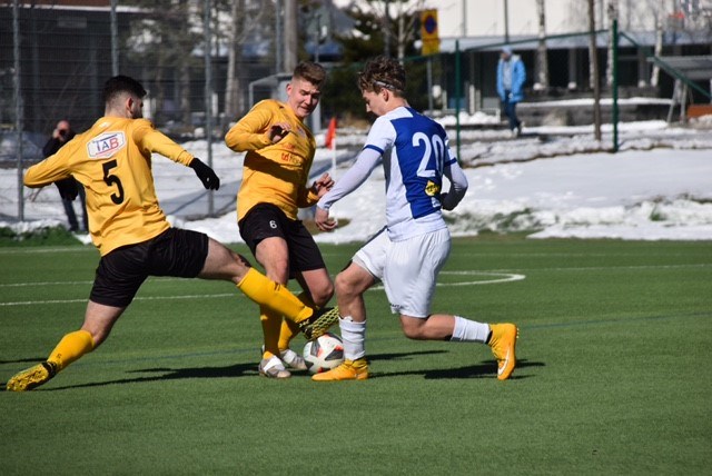 Igår inledde vi seriespelet för 2023 i P19 Superettan Norra då vi åkte för att gästa IFK Haninge. Matchen spelades under perfekta väderförhållanden med strålande sol och känslan inför var god. Vetskapen hade vi med oss i att det skulle bli en tuff match men vi var taggade och ville verkligen göra bra ifrån oss. Det blir dock ingen bra start för oss då Haninge gör 1-0 efter 13 minuter, en boll som rinner igenom oss överraskar en chanslös Albin i målet som inte hinner ut i tid. Vi tvingas dessutom göra ett tidigt byte strax efter, och kunde bara några minuter senare konstatera att Haninge gått upp i en 2-0 ledning. Albin räddar förstabollen men andrabollen får vi inte bort och Haninge kan peta in den i målet. Vi håller ut en stund och lyckas freda eget mål, skapar någon halvchans när vi slår lite längre bollar. Sedan när klockan går upp mot 40 minuter lyfts en boll in bakom vår backlinje och vi blir lite för passiva i försvarsspelet, och Haningespelaren får varandra inåt i planen och göra ett ganska enkelt mål. Tung första halvlek och ett jobbigt resultat att ta med in i halvtidspausen. I halvtid pratar vi om vad som behöver förändras och hur vi ska nå dit. Vi var uppgivna efter första halvleken, och då gäller det att ta med sig ny energi in och kämpa ännu mer. Andra halvlek startar och matchen går vidare i samma hjulspår kan man säga, Haninge har en hel del boll, vi kämpar på med att försöka bygga upp ett spel men får svårt när Haninge fortsätter sätta hög press. Vi sätter oss själva i svåra lägen och Haninge är duktiga på att utnyttja våra misstag. Motståndarna gick för att göra fler mål, och även fast Albin gör två riktigt vassa räddningar och håller nere siffrorna i andra, så gör Haninge i den 75:e minuten 4-0 efter en hörna. 5-0 kommer cirka fem minuter senare när vi tappar boll och blir lite för mycket bolltittare och glömmer bort spelaren längst bort i straffområdet som enkelt kan göra dagens sista mål. Vi gör en sista slutforcering och sätter lite tryck på Haninge men vi får inget ut av det då matchen sen länge tyvärr var över för vår del. En mycket tung förlust och uppgivna spelare satte sig ner på planen efter slutsignalen, att förlora i premiären är aldrig roligt. Vi kommer inte upp i nivå, möter en bra motståndare och släpper till för många enkla målchanser i eller runt omkring eget straffområde. Då blir resultatet som det blir. Vi får ta oss en funderare och gå tillbaka till träningsplanen och fortsätta träna vidare på det vi behöver utveckla. Men serien är lång, så ingenting är kört ännu! Vi kämpar vidare helt enkelt… Matchhändelser: IFK Haninge U19 - BK Forward U19 omgång 1 P19 Superettan Norra 2023. Gult kort: Olle Andersson 7’ 1-0 IFK Haninge 12’ Byte: Hamid Alizada in (Vincent Halonen ut) 15’ 2-0 IFK Haninge 18’ 3-0 IFK Haninge 41’ Byte: Erik Rolland in (Zlatan Krak ut) 65’ Byte: Filip Paavola in (Eli Nzau ut) 75’ 4-0 IFK Haninge 75’ 5-0 IFK Haninge 80’ Byte: Mahad Said in (Neo Meijer-Persson ut) 81’ På bilden: Kamp om bollen.