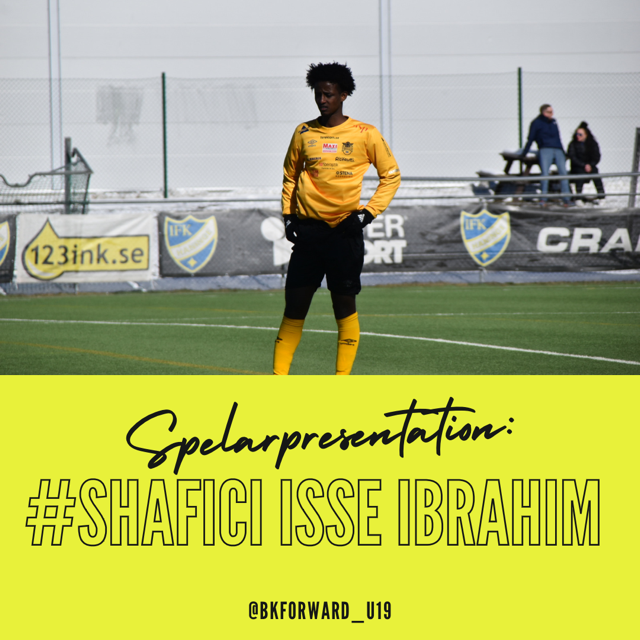 Nästa spelare att presenteras är en hårt jobbande anfallare som alltid gör sitt bästa för laget. Shafici Isse Ibrahim kom in i laget tidigare under våren, och har hunnit med att spela i ett par matcher. Vi hoppas han kan utvecklas hos oss under säsongen! Nedan ska vi lära känna honom lite mer... Namn: Shafici Isse Ibrahim Ålder: 17 år Position: Anfallare Moderklubb: Frövi IK 7 snabba frågor med Shafici... Styrkor som spelare: Löpstark anfallare, bra på att snabbt komma till avslut Favoritmat: Somaliskt ris Förebild: Messi Favoritlag: FC Barcelona Naturgräs eller konstgräs: Naturgräs Favoritfilm/serie: The I-Land Förväntningar/mål med säsongen: Jag vill utvecklas som fotbollsspelare så mycket som möjligt och bidra så mycket jag kan till laget. Visste du att…Shafici har spelat frisbee USM i Malmö 2021?! Han gjorde endast en träning inför med laget från Frövi, och laget kom sedan på andraplats i turneringen! Det var bra jobbat!